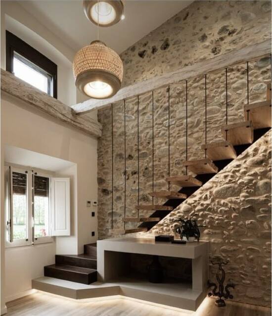 Per arredamenti dal carattere più classico, l’approccio cambia completamente. Qui la scala diventa un elemento di continuità con la tradizione, ma reinterpretata in chiave contemporanea. Abbinando pietra naturale per i gradini (un look realizzabile anche con rivestimenti in gres, più economici e facili da sostituire) a balaustre in ferro battuto dalle linee pulite, si crea un equilibrio perfetto tra eleganza e funzionalità.